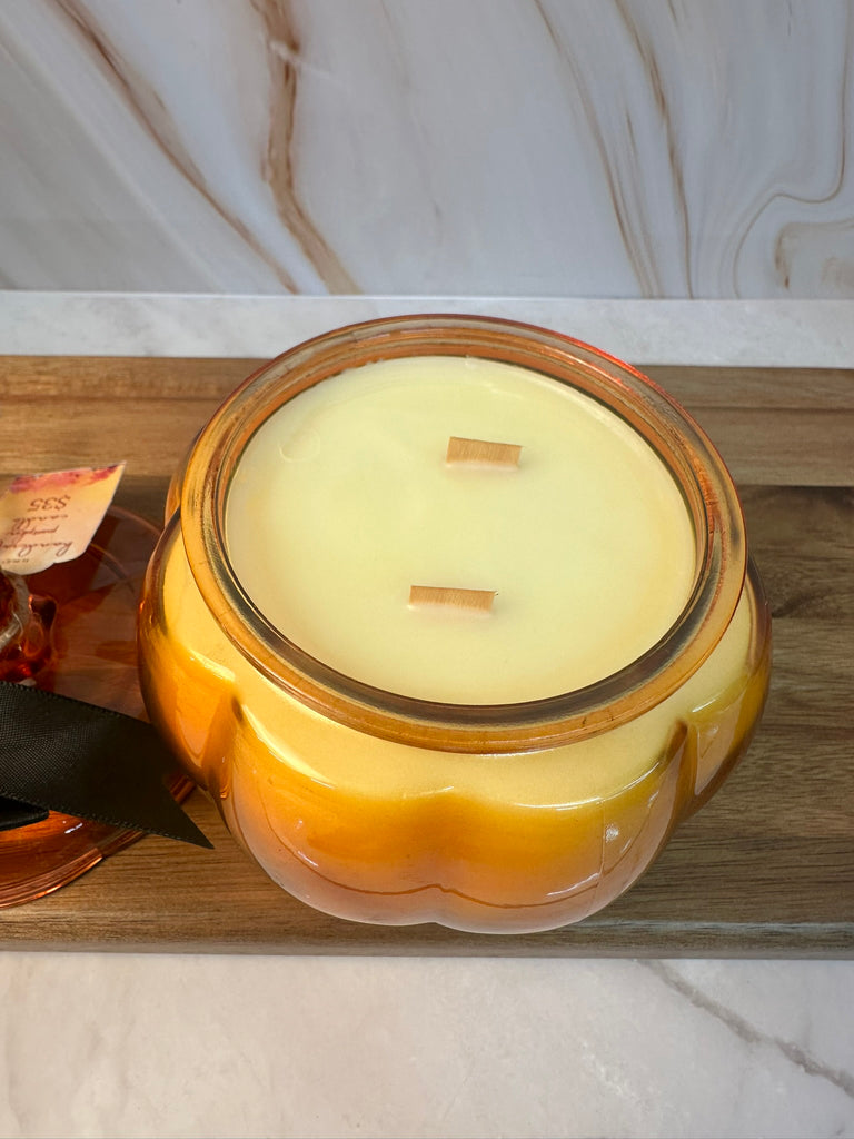 Welcome Fall with our limited edition, hearty glass pumpkin candle! Gorgeously scented in vanilla marshmallow pumpkin. Limited quantity available. 17oz.