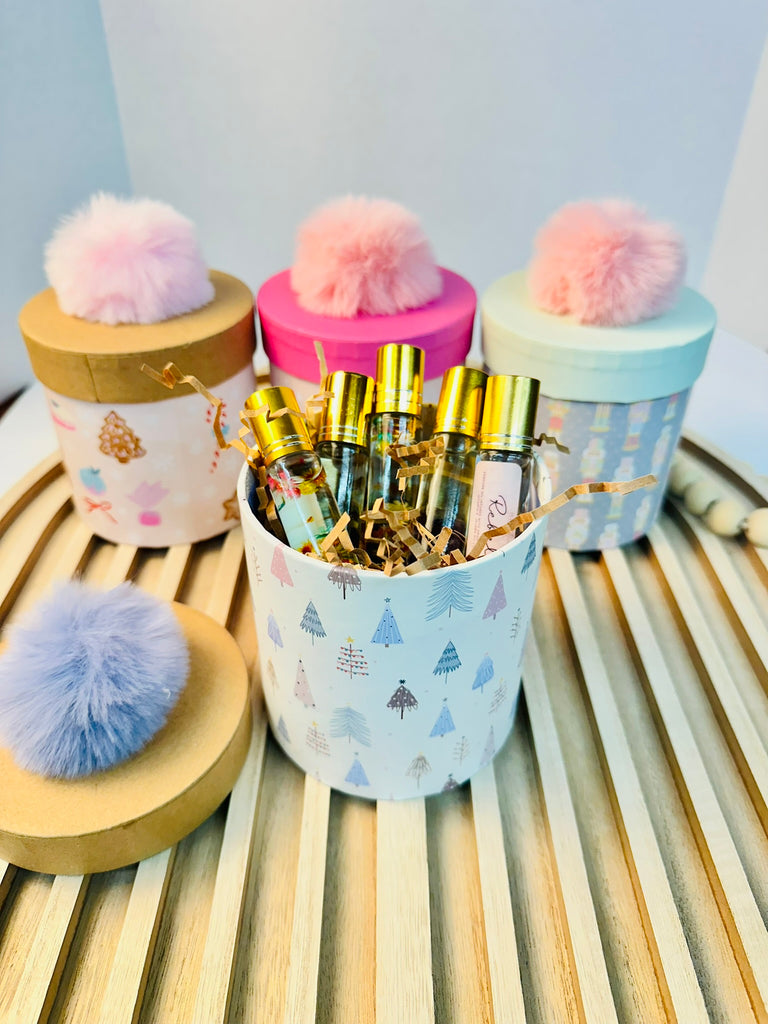 Celebrate the season with our Limited Edition Christmas Perfume Gift Box, featuring five of our handcrafted botanical perfumes beautifully packaged in a festive holiday box. Each scent is blended by hand with nourishing coconut, jojoba, and vitamin E oils, and adorned with dried flowers and crystals for a touch of natural elegance. Perfect for gifting or indulging yourself, this exclusive set offers a luxurious sampling of our most beloved fragrances—available only for the holidays. A thoughtful, ready-to-gift treasure that brings cheer, beauty, and fragrance to the season.