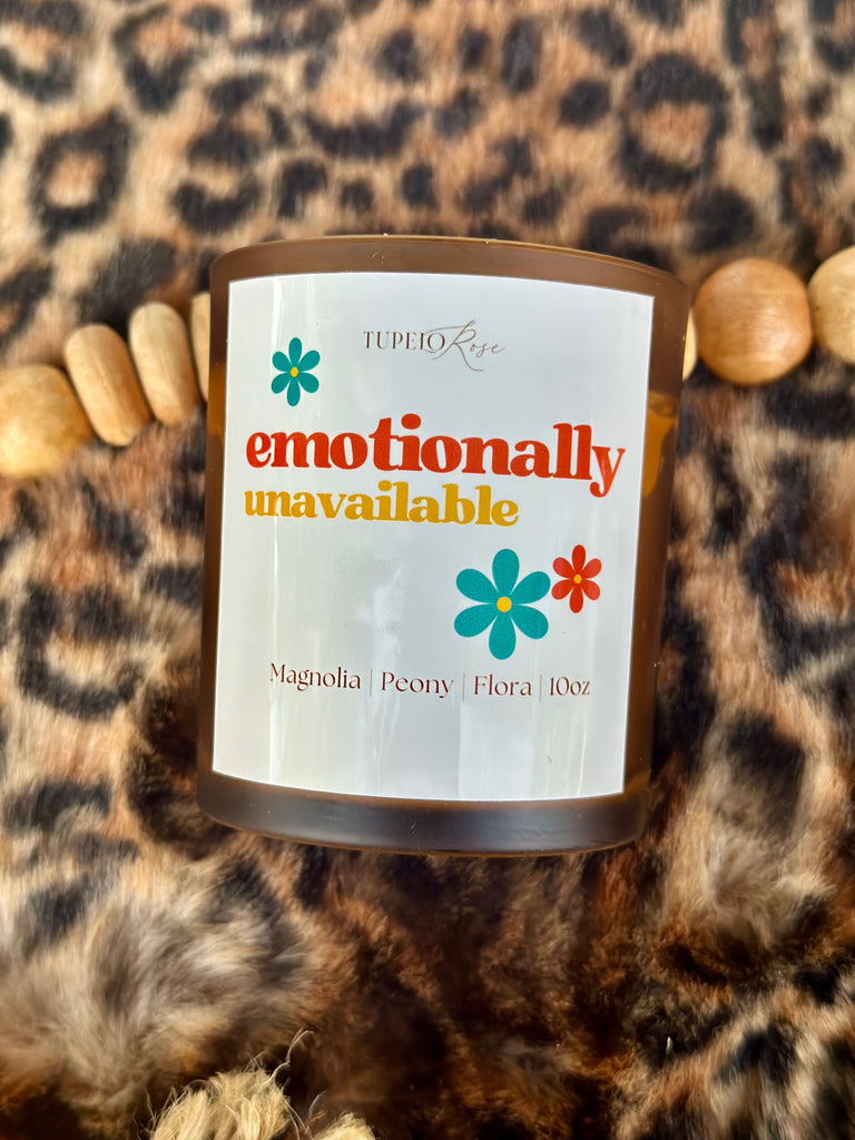 Soft, graceful, and effortlessly feminine — Emotionally Unavailable- is a delicate floral escape that feels like stepping into a serene garden in full bloom. Lush magnolia petals and elegant peony create a romantic heart, while gentle floral undertones add layers of freshness and charm. This beautifully balanced scent evokes quiet confidence, peaceful mornings, and timeless beauty. Light it when you need a moment of calm wrapped in floral elegance. Also- it's moody, bold and unapologetically UNAVAILABLE, just because you want to be. 10 oz.